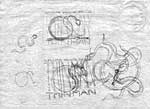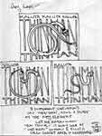When I got the call from KALUTA in Liverpool, asking if I'd like to try my hand at doing a cover for their first-ever single release, I said YES as quickly as I could... and that evening I went to The City Diner on Broadway, NYC and doped out the basic Idea for the b/w cover they'd requested. I used my sketch paper of choice: the placemat. It has become such a ritual, my drawing in the diner late at night, the waiters put down two or three placemats when they seat me.